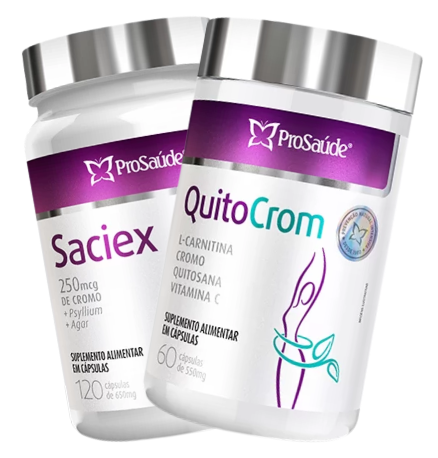 Enquanto o QuitoCrom contribui para o aproveitamento da gordura como fonte de energia e apoio metabólico, o Saciex ajuda a prolongar a saciedade e a reduzir excessos ao longo do dia.