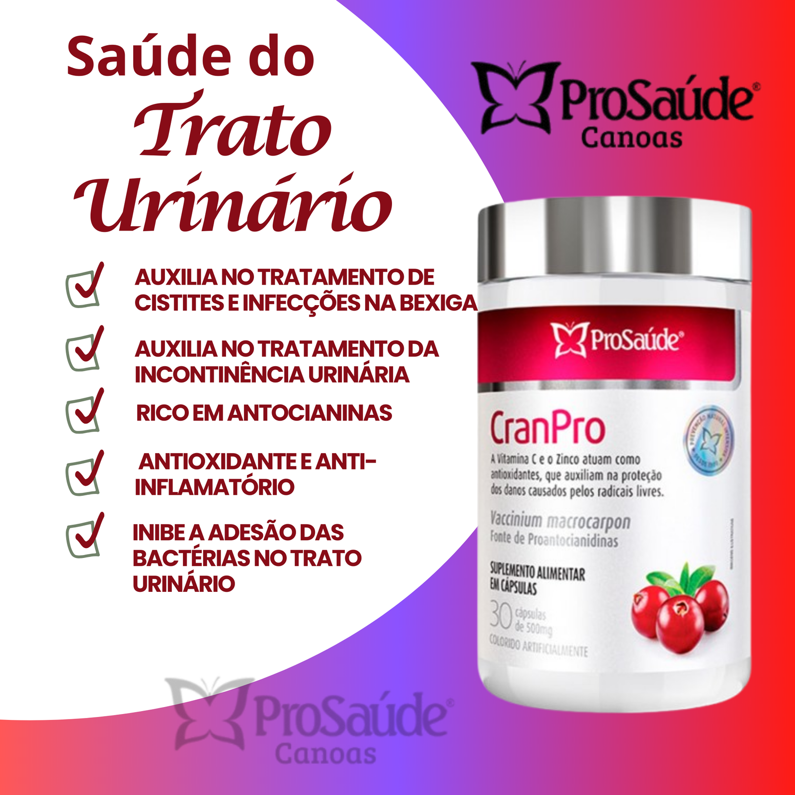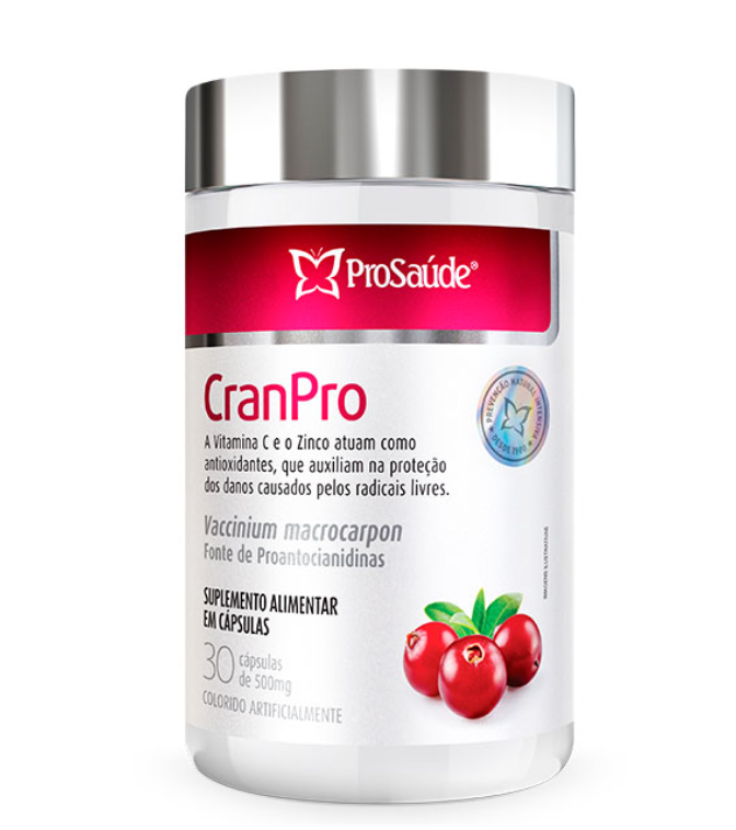 CranPro: Auxilia na prevenção de infecções urinárias e reduz a aderência de bactérias no trato urinário. Estudos comprovaram que o Cranberry contém proantocianidina, substância capaz de inibir a adesão das bactérias no trato urinário.