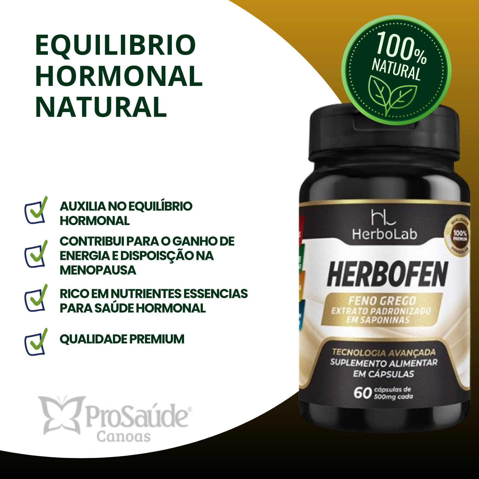 O Herbofen da Herbolab é uma fórmula funcional que combina feno-grego, L-arginina, zinco e boro, auxiliando na circulação, vitalidade, equilíbrio metabólico e hormonal, além de contribuir para a imunidade e o bem-estar geral, com ativos de alta biodisponibilidade para melhor aproveitamento pelo organismo.