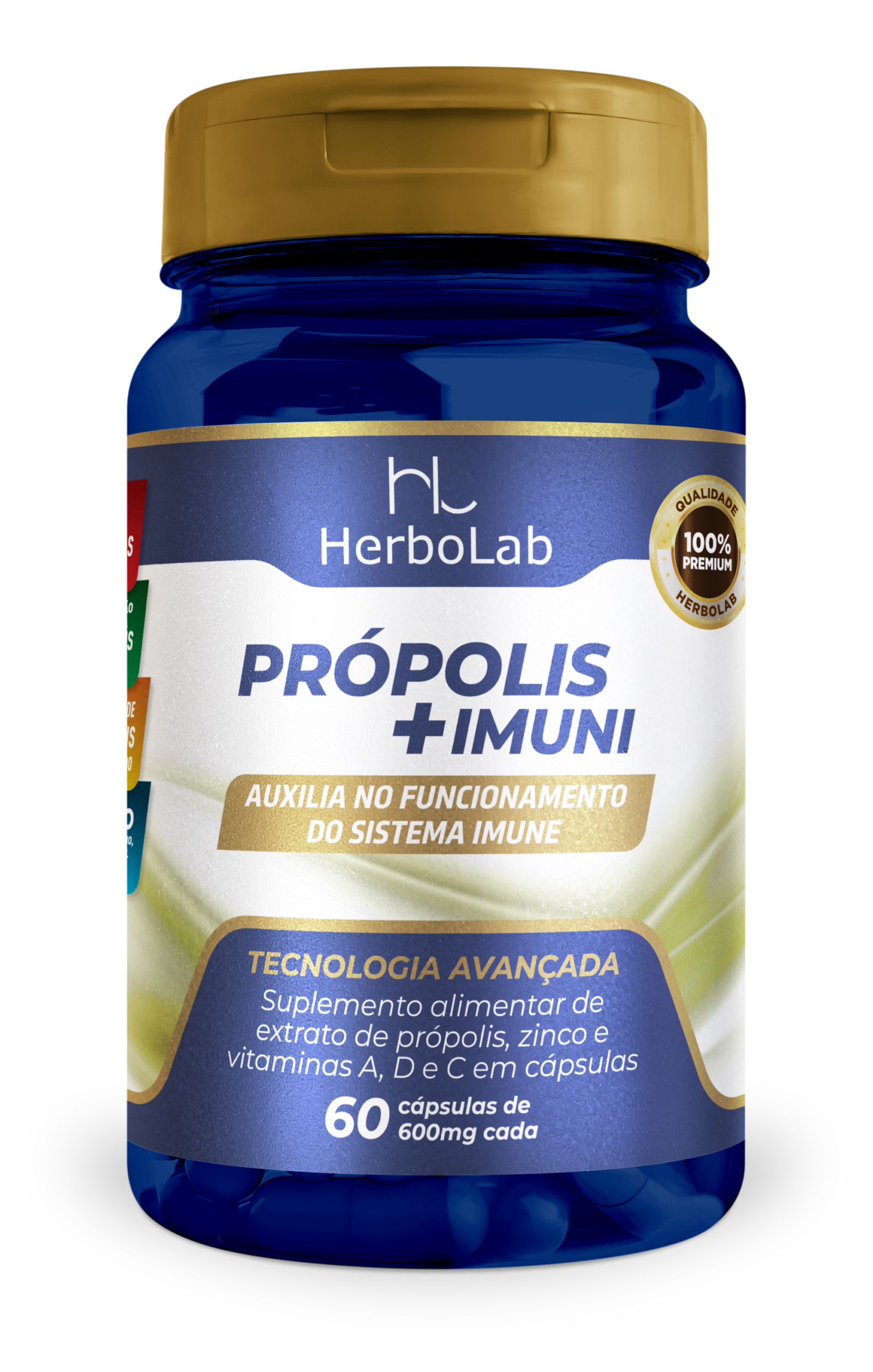 O PRÓPOLIS +IMUNI Herbolab é um suplemento alimentar em cápsulas, elaborado com extrato de própolis – o qual fornece compostos fenólicos, além de vitaminas e minerais que