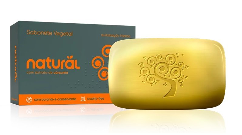 O sabonete vegetal Natural com extrato orgânico de cúrcuma é livre de corantes e conservantes e garante uma pele mais saudável, macia e sedosa. Promove limpeza suave, renovação celular e brilho natural à pele. Sua leve esfoliação estimula a regeneração e melhora a textura, revelando um toque sedoso e viçoso.