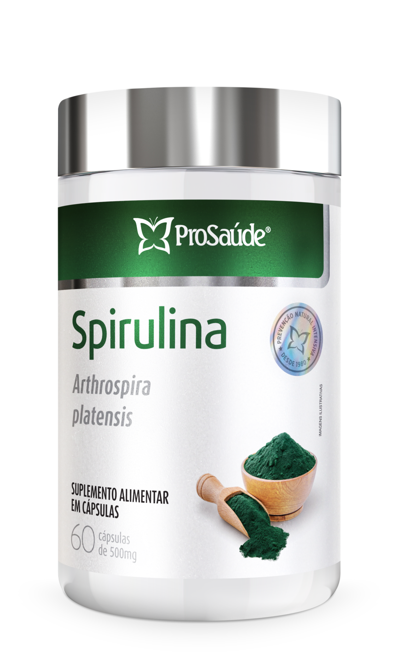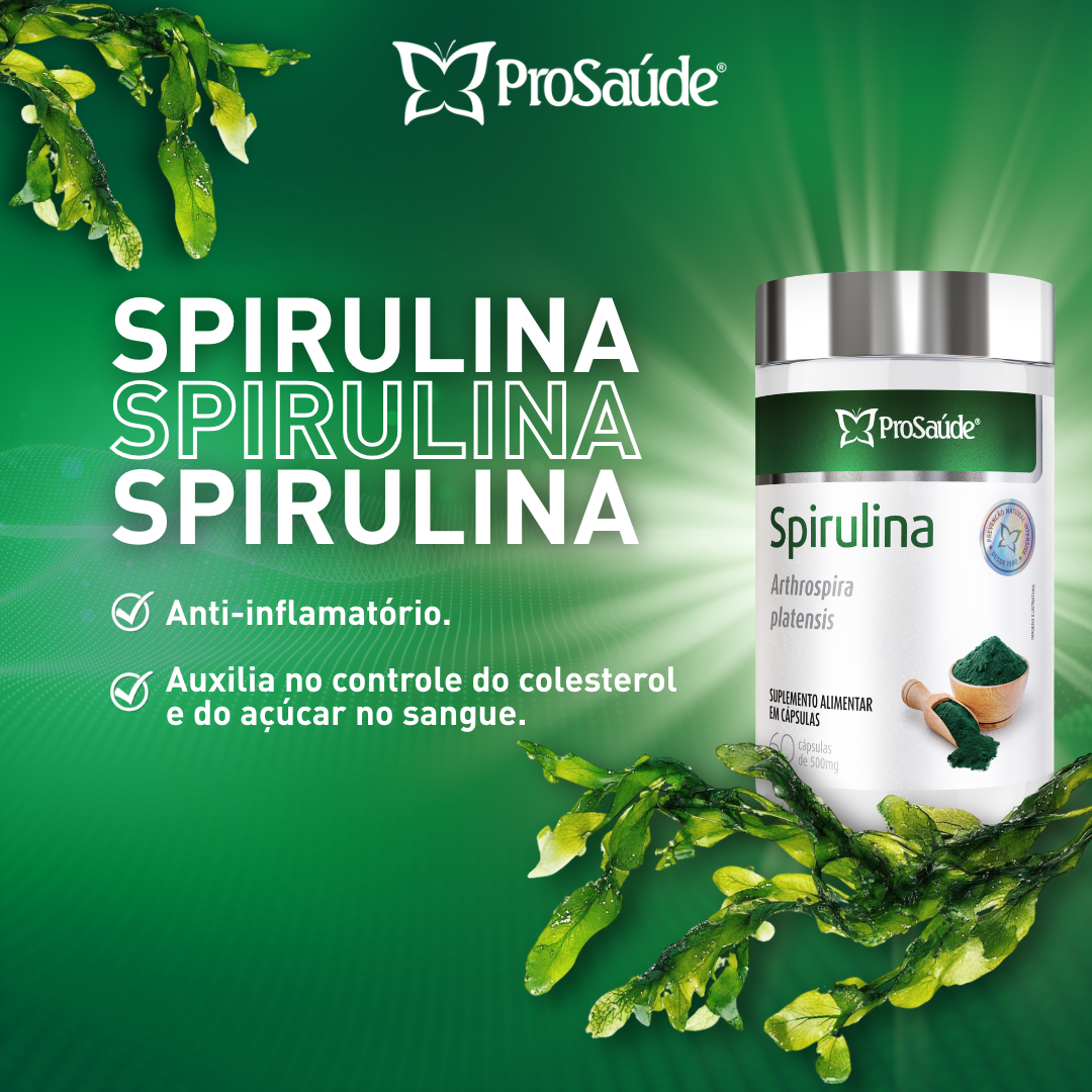 A Spirulina da ProSaúde é um suplemento alimentar em cápsulas composto por 100% de Arthrospira platensis, uma